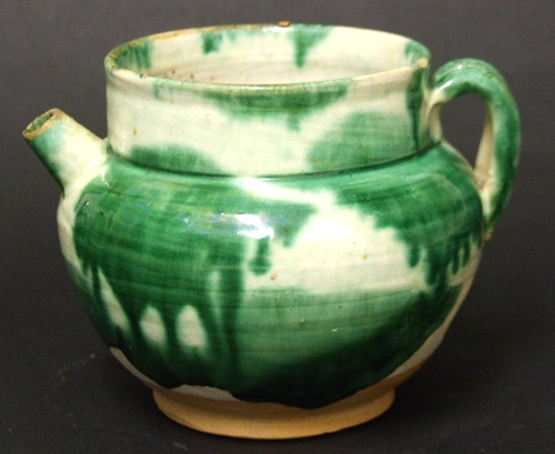 Chemical quality became a priority. At the same time “Muffles” came into use. These were capsules of fireproof clay to hold items to be fired and protect them from the direct heat of the kiln. This reduced the number of accidents to pots during firing and led to better quality glazes. Decoration of stoneware in the Tang period was more sombre, with subdued colours as high-fired glazes in China were dependant on iron oxide. Early pottery and stoneware forms from Henan were small, stout ewers with straight spouts and small handles.