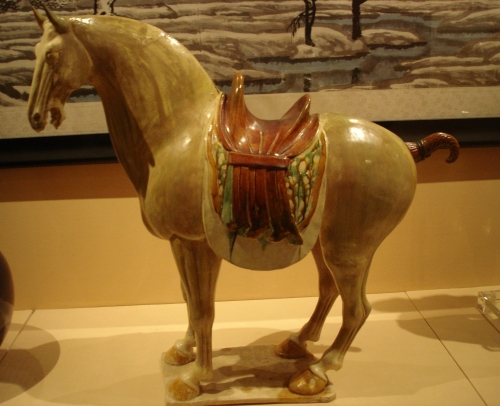 These models of horses are among the most celebrated examples of ancient Chinese art. In the Tang Dynasty the horse was seen as very important for security reasons, as the northern barbarians were very adept at horse riding warfare.