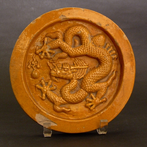 Practically every oriental museum in the Western World possesses parts of Chinese buildings, especially ceramic roof tiles and figural ornaments. In Han times the decorated panels on the end tiles of roofs already displayed complex designs reflecting the status of the building. In Ming times very important buildings were differentiated by having curved tiles while other buildings had flat ones. The ceramic tiles on the roofs of the Imperial Palace also had predetermined colours, blue representing the sky, yellow the earth and green for water. During the Ming period the Hall of Harvest Prayer had three roof levels appropriately tiled from the top blue, yellow and green. Temples also had certain tile colours, for example the Earth Temple was yellow, the Moon Temple white and the Sun Temple red. Monastery roofs were prescribed green tiles unless it had been granted Imperial privileges when they were yellow. Ordinary residential roofs in the city had to be unglazed, coloured grey or black with no decoration. Far from Pei-Ching houses were supposed to comply with colour and decoration rules, but often had complex roof shapes and ridges (and the occasional dragon!). The number of figures on the roof ridges also illustrated the importance of the building; for example, in the Imperial Palace the Hall of Supreme Harmony there are the maximum number of figures permitted – twelve, the Emperor’s residence ten and the Empress’s living chambers eight. Colourfully glazed ceramic tiles were used for wall decoration, with heavy relief of flowers and imitation of carved beams. Tile makers also produced pottery figures.