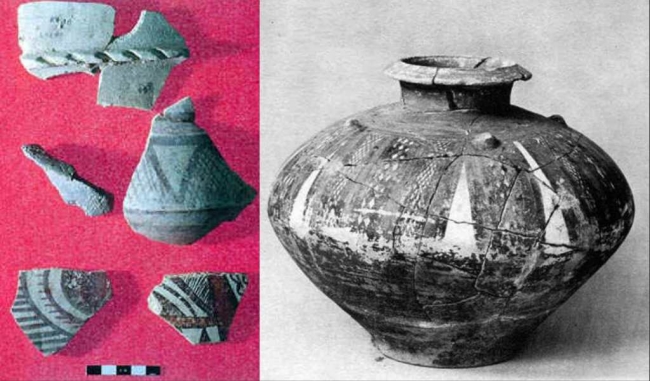 Djemdet Nasr painted sherds and pot,