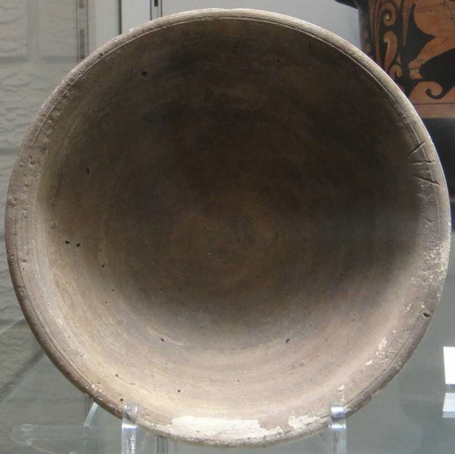 Wheel-made, Uruk-style, decorated pottery was found immediately above the flood layer, and Ur has revealed some particularly good examples of these painted designs. Vases, bowls (some with feet) and goblets have been found dating to about 3,200 BC, generally decorated in dark colours on a light ground. Earthenware statuettes have also been found around this date. A pottery vessel with long spout, based on a copper prototype, is an ancestor of many later variations from this region. After 3,000 BC decoration in the region reduced somewhat, but there are examples of large, buff pottery stands from graves with inscribed leaves and triangles filled with wavy lines dated around 2,500 BC. Utilitarian pottery was also wheel made.