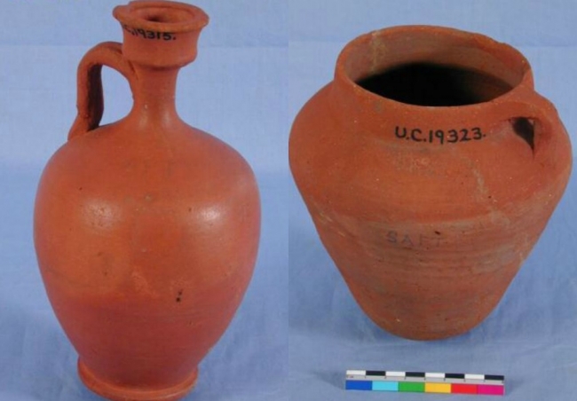 The Greeks introduced cremation to the Egyptians, so special pottery vessels were produced to hold the ashes. Much pottery now was red coloured, again with little decoration other than a few black lines.