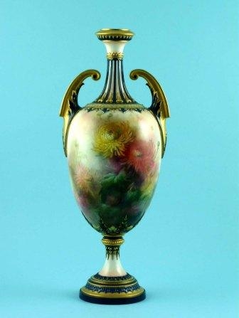 There were two other pottery establishments in Worcester. One owned by James Hadley, a very skilled ceramic modeller, who started work in the W H Kerr factory around 1851/2, becoming chief designer and a top modeller responsible for magnificent figures and vases from the mid 1860’s. He set up on his own in 1875 as a modeller and designer, selling almost all his designs of fine vases to Royal Worcester. He also exhibited them in Paris in 1878 and Chicago in 1893. He started his own pottery, based in a factory near the main Diglis plant, which began manufacture of majolica type earthenware made from different coloured clays in 1896, known widely as “Hadley ware”, initially using the kilns at Locke’s factory. James died in 1903 and in 1905 his factory was bought by the Worcester Royal Porcelain Co. who continued to produce his popular wares for many years.