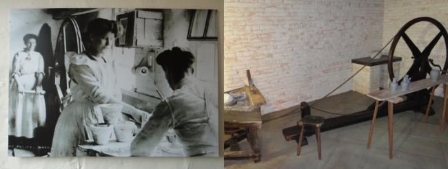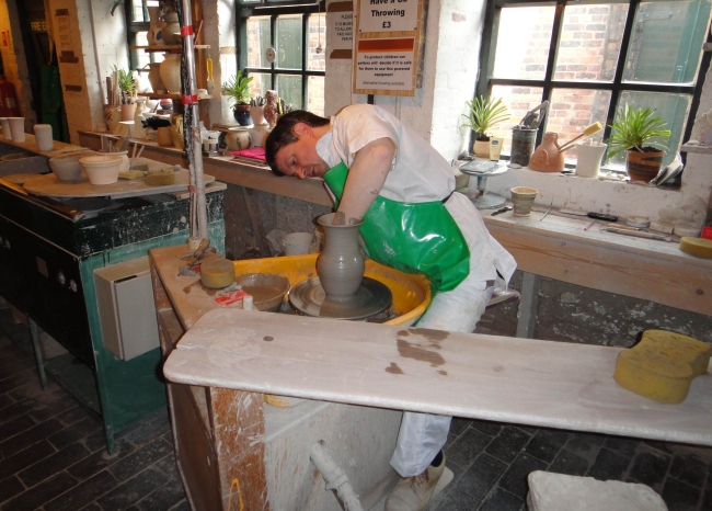 Amazingly, in the West the wheel was usually driven anticlockwise, but in China and Japan it was driven clockwise. The final step was to arrange a very high momentum wheel to be at floor level with a pedestal and worktable enabling the potter to drive the wheel with his foot (the “kick” wheel), freeing up both hands to model the pot (possibly devised in Egypt but the date is disputed between 1,500 and 500 BC). This permitted an averagely skilled potter to readily “throw” a pot where the speed of rotation was consistent and high enough to allow the manufacture of high quality, mass-produced pots. Once the clay had been centred on the wheel it would be drawn up and squashed down to further homogenise it. The centre would be hollowed out and the sides of the vessel drawn up. Various aids might have been used to help the potter form the body such as the Chinese “potter’s ring”.